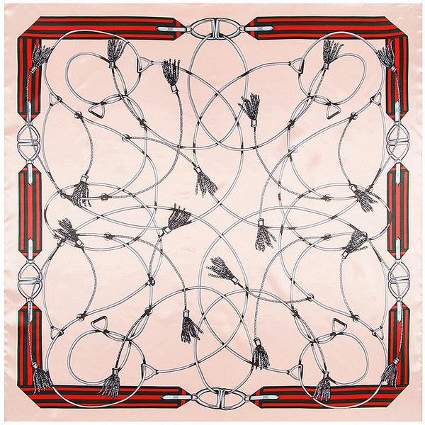 Grand foulard carré en soie à imprimé chaîne et corde - rose