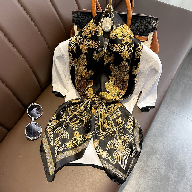 Foulard en soie à imprimé phénix noir et or de style rétro chinois