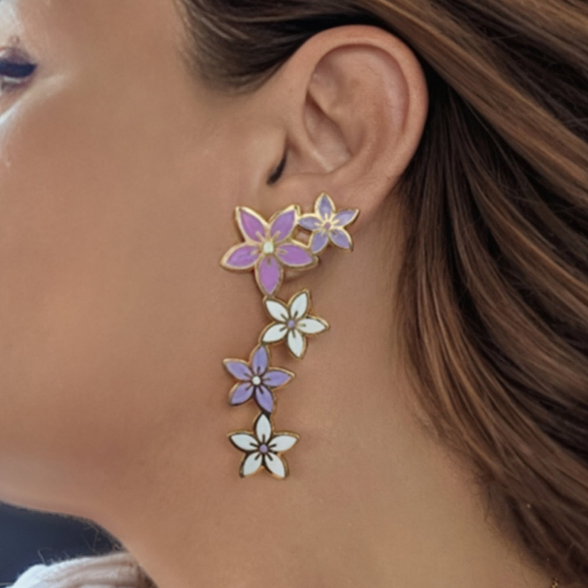 Celebrate the spirit of spring with our handcrafted enamel flower earrings — a radiant statement piece featuring five vivid blossoms. Each flower is a tribute to growth, femininity, and joyful expression. Lightweight yet eye-catching, these earrings are perfect for garden parties, beach escapes, or simply brightening your everyday look. Designed with care in our Beirut atelier and available across the UAE with fast delivery.